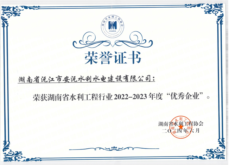 • 2024-06-29 安沅公司榮獲湖南省水利工程行業“優(yōu)秀企業